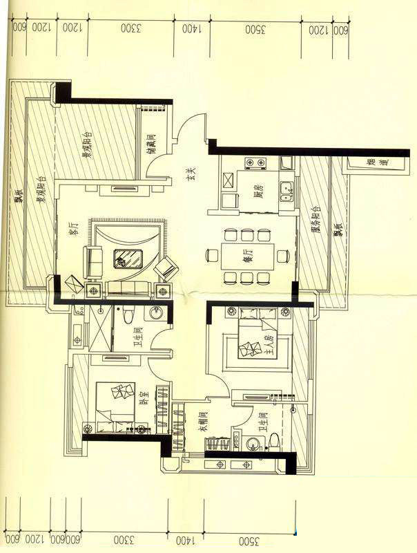 依雲天匯B01戶型 3室麵積155.00平米