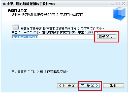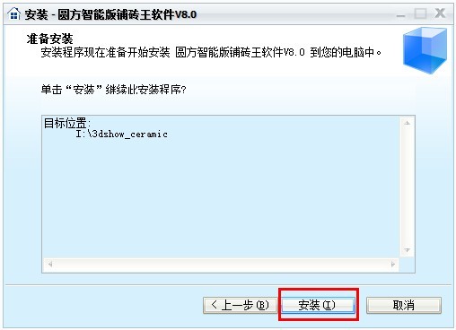 例如:假設要選擇I盤,點擊“瀏覽”,選擇I盤(安裝完畢後會在I盤生成3dshow_ceramic文件夾,軟件的所有文件都保存在這裏)