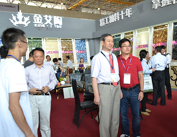 在陶博會開幕式之後,中國建築衛生陶瓷協會會長葉向陽;中國建築衛生陶瓷協會秘書長繆斌;中國建築衛生陶瓷協會副會長、廣東省陶瓷工業協會副會長、佛山市陶瓷行業協會會長、廣東東鵬控股股份有限公司董事長何新明;佛山中國陶瓷城集團有限公司執行董事兼總裁周軍等一行蒞臨叼嘿软件下载大全陶展館參觀考察,被叼嘿软件下载大全陶2.0厚道係列微晶石工藝、花色所吸引。叼嘿软件下载大全陶瓷磚董事長劉鴻祥向葉會長一行詳細介紹了叼嘿软件下载大全陶瓷磚新品——2.0厚道係列微晶石。並深入交流了行業形式與企業發展。